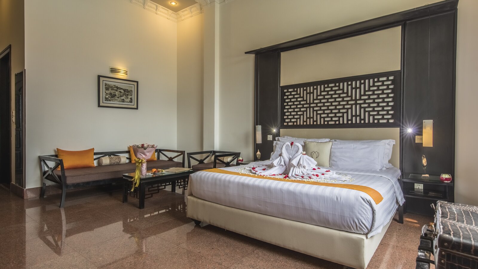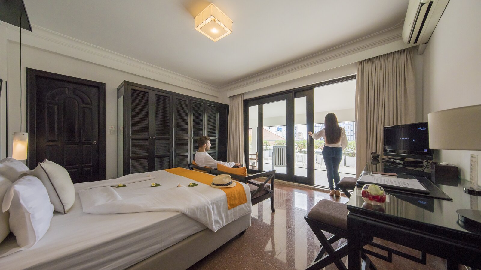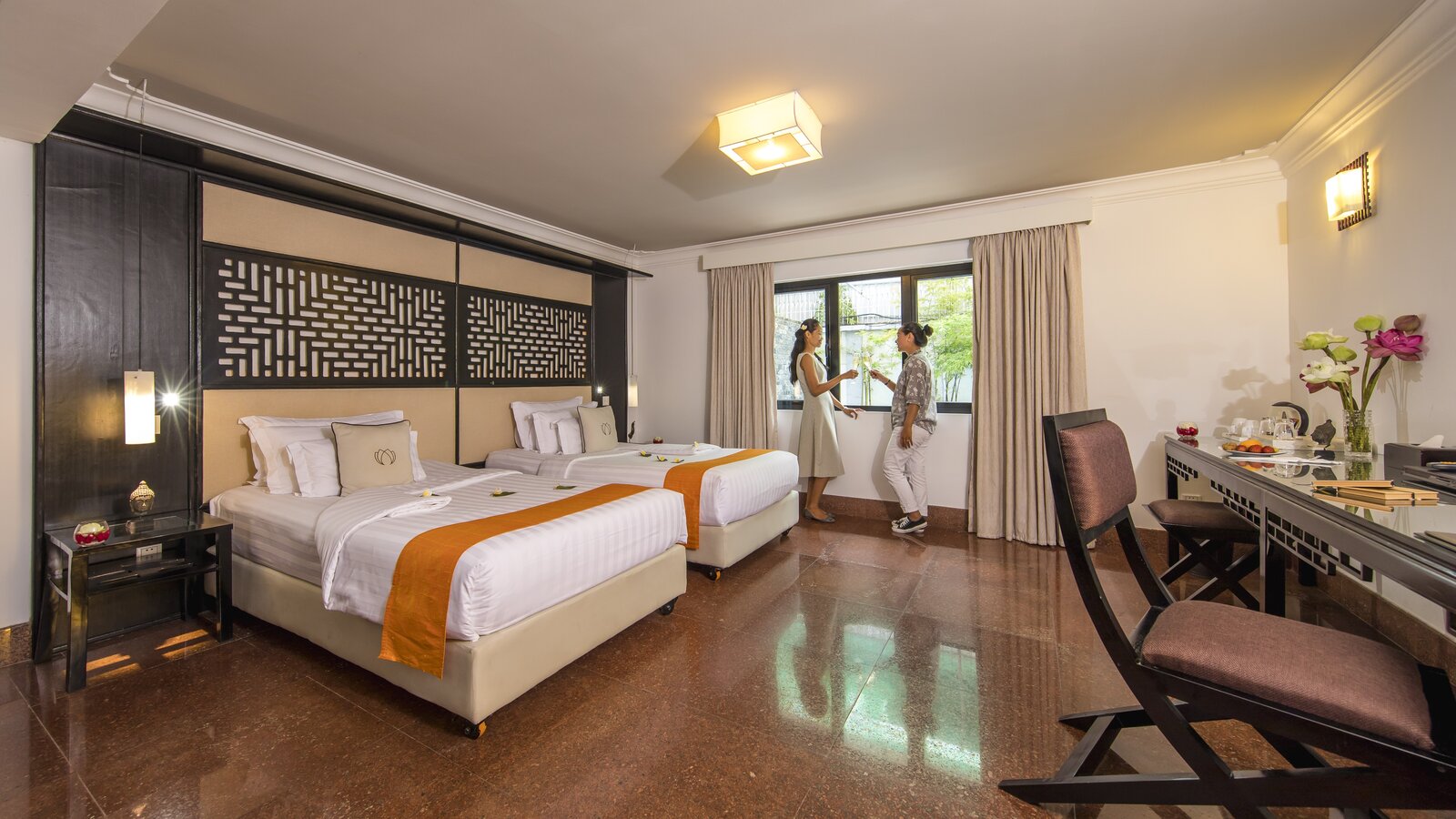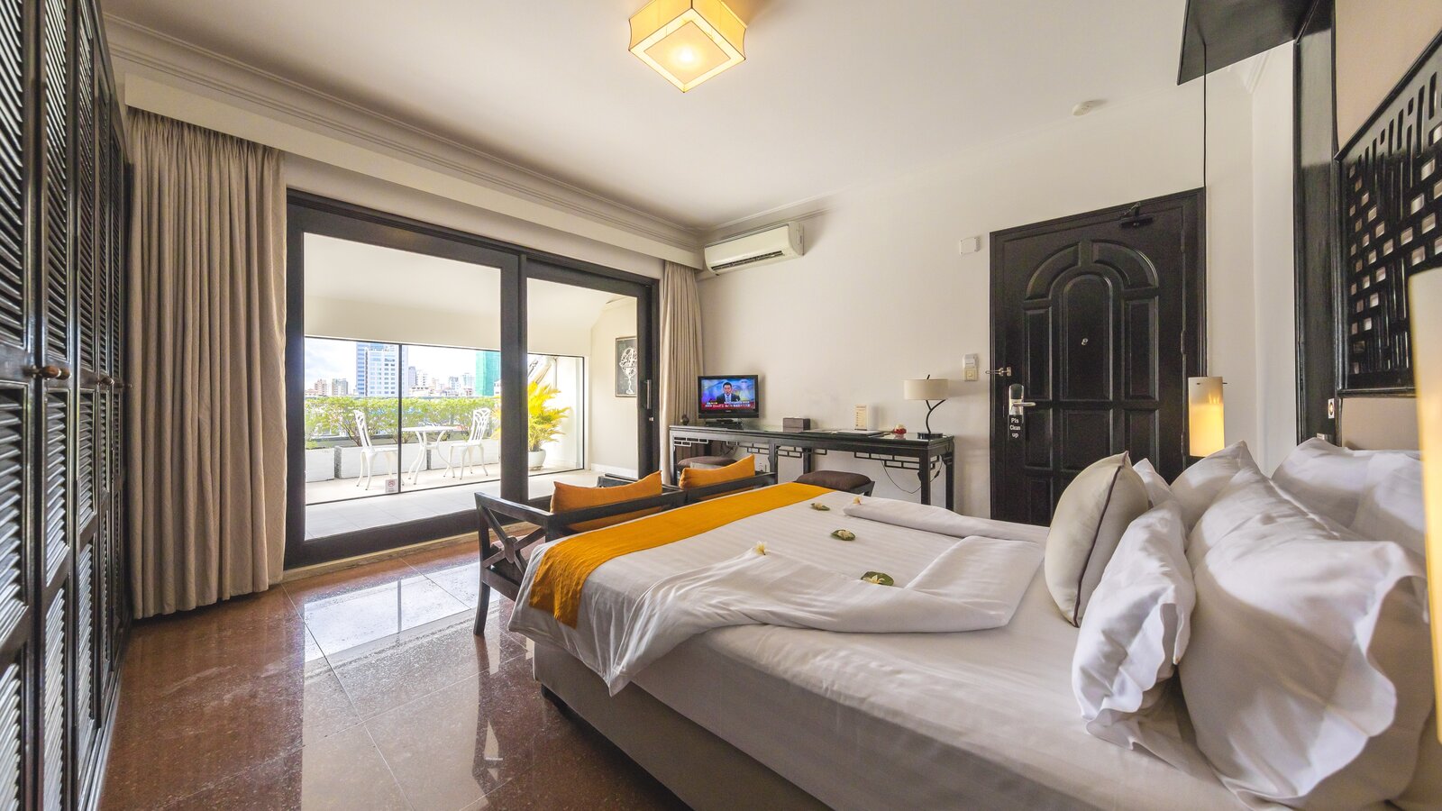 Get the mansion vibe with this spacious, stylishly furnished and decorated accommodation. Casual chic with timeless Asian touch. Sitting area, working station, en-suite bathroom, balcony with garden or city view.