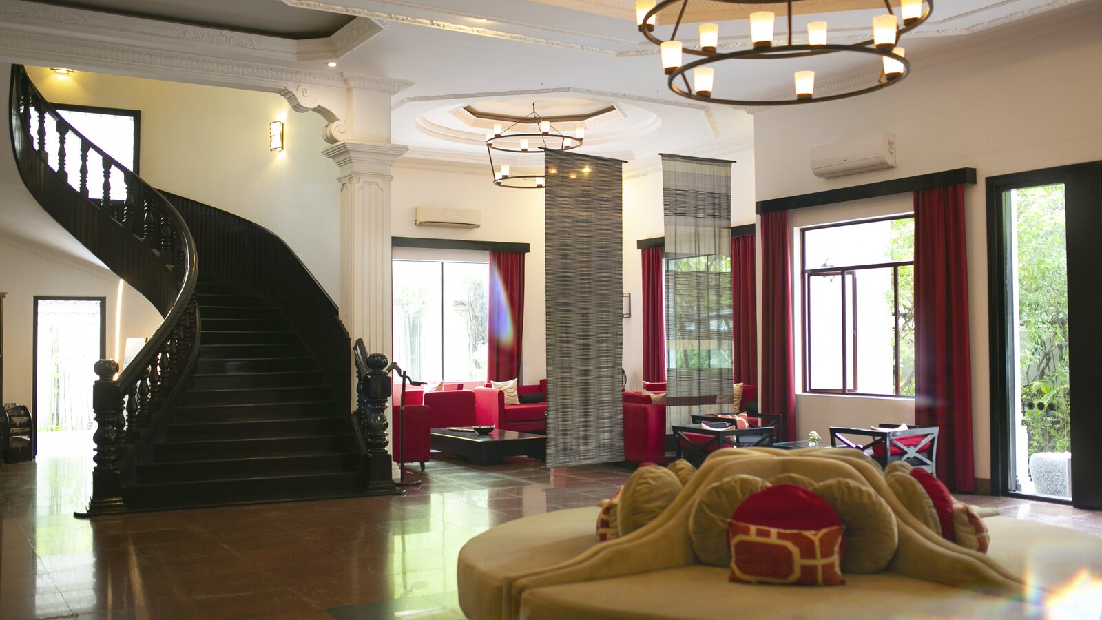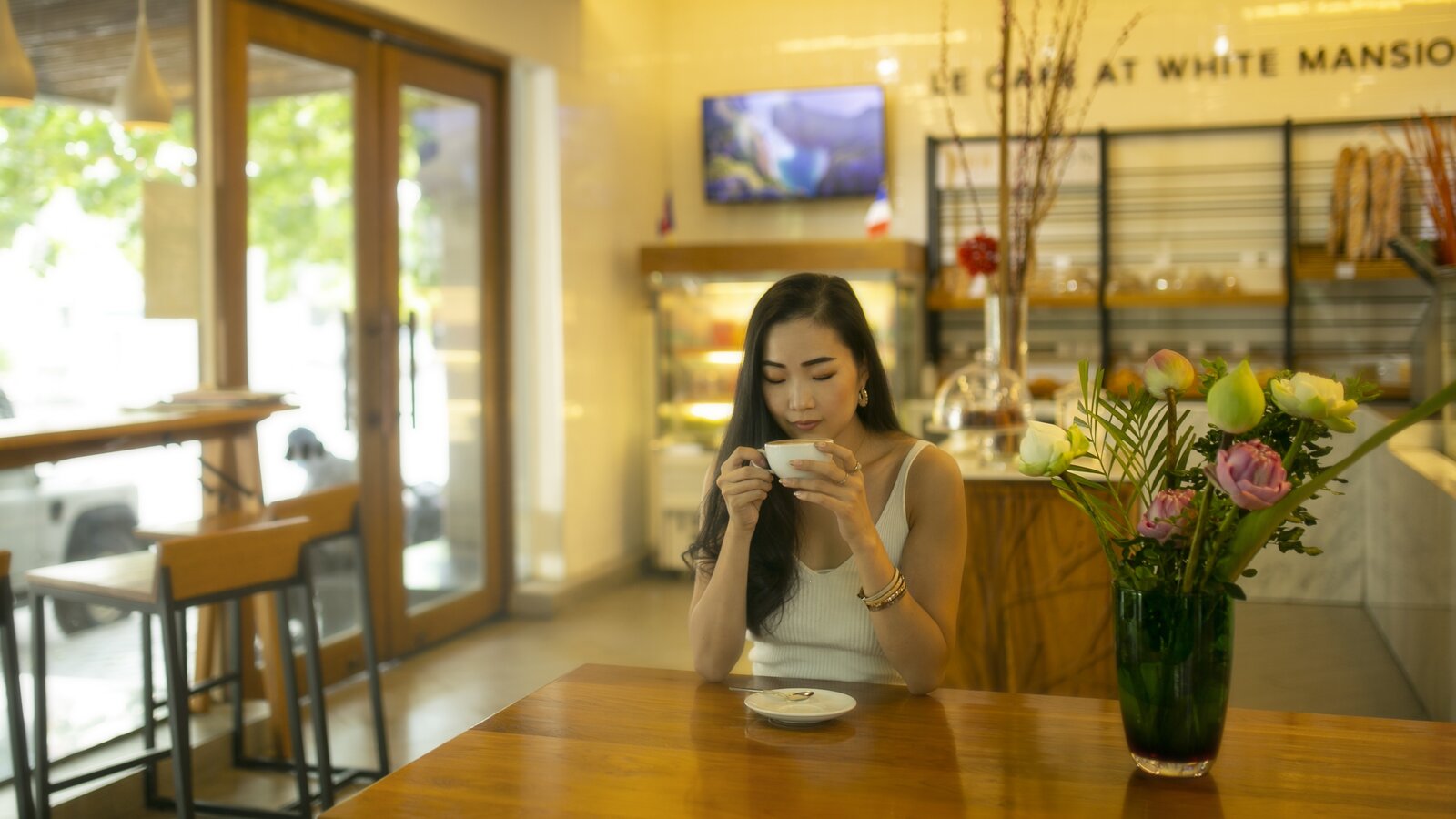 Around-the-clock snacks and beverages, freshly baked breads and pastries, light and gourmet meals with a selection of International and Asian dishes. Cafereria area, cozy lounge in the back and outdoor seating within White Mansion lush gardens.
